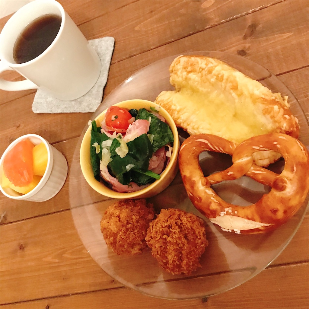 パンは浜町のタンネで買ったプレッツェルとケーゼスタンゲン。こちらはドイツパンのお店でした!プレッツェル好きなので行ってみたんです。泊まったホテルからも歩いて行ける距離でした♪ お店の人がイケメンすぎて(ドイツの方なのかな?)度肝を抜かれましたw