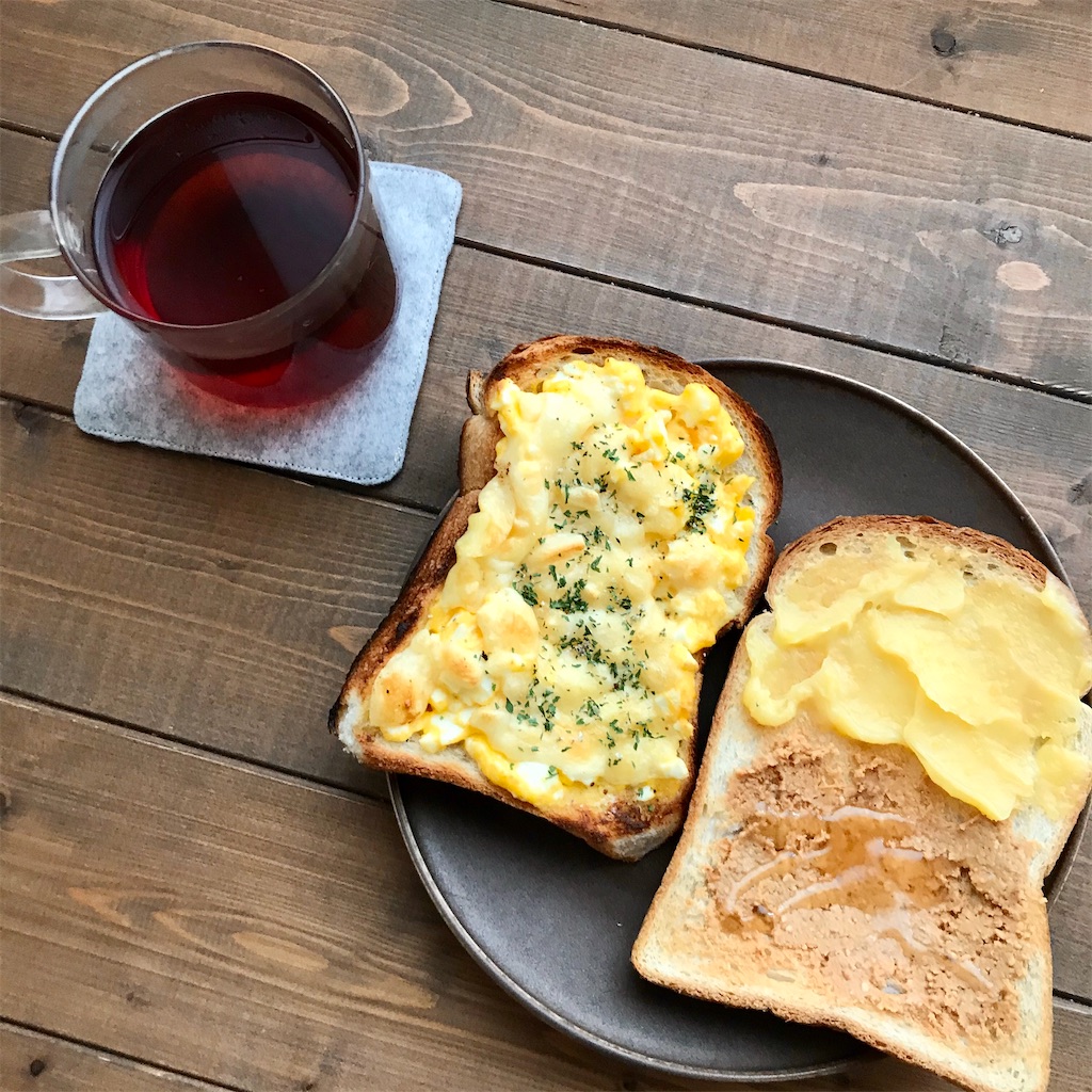 左は卵マヨにチーズのせ。パン焦げたw必死でコゲを取るのでした。。