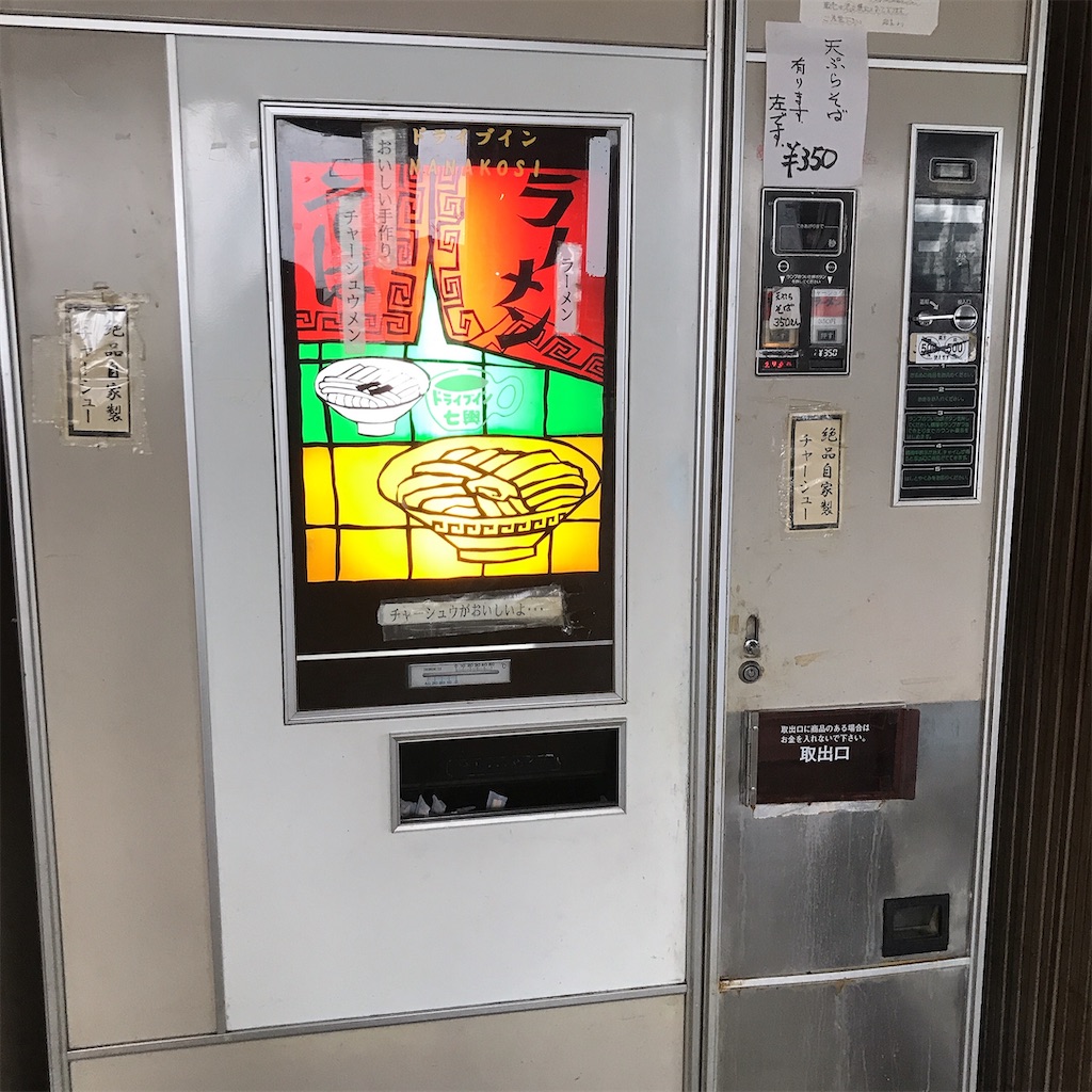 そば・ラーメン。隣には天ぷらうどんもあって夫はそれを食べました。ボタン押してから出てくるの早すぎっ!で、おいしいし!