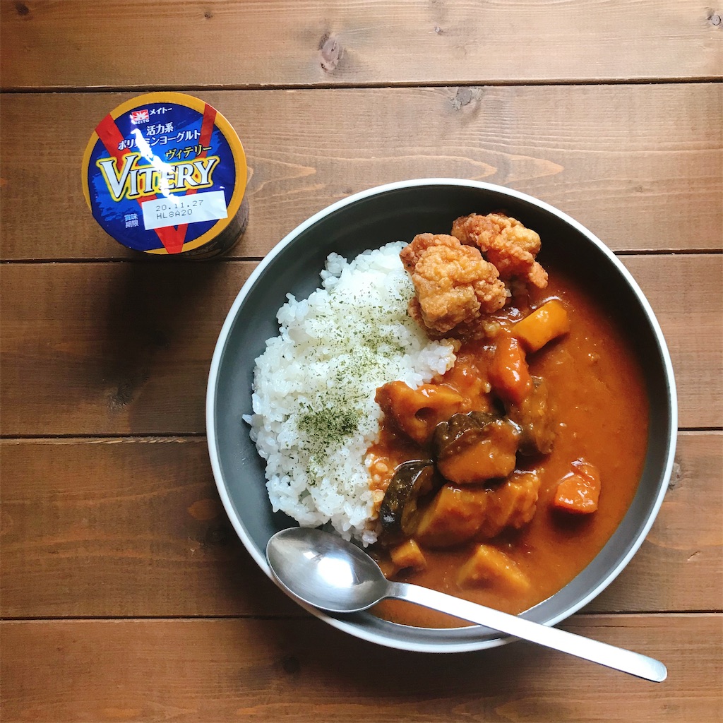 野菜カレーに唐揚げトッピング