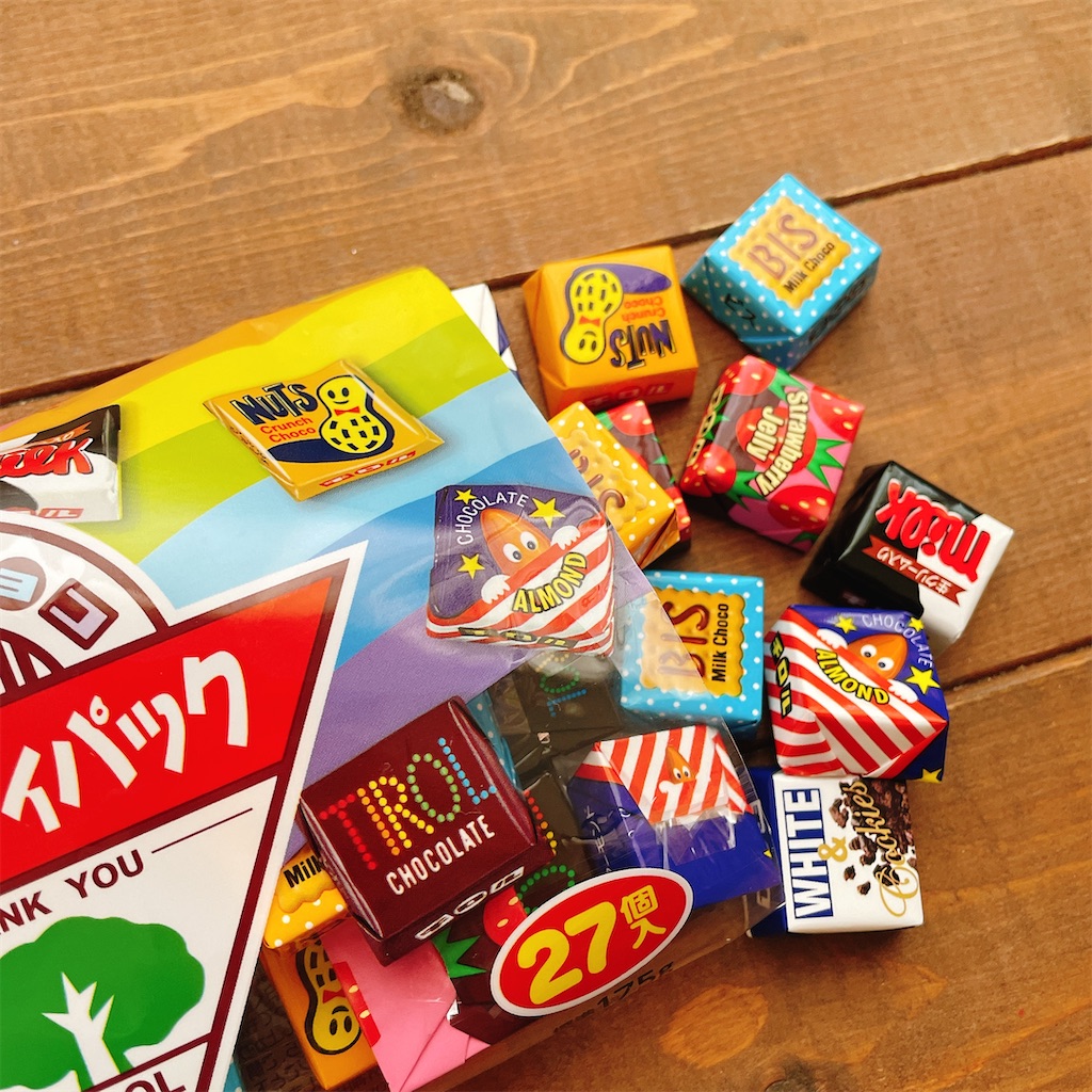 チロルチョコのバラエティパック。今は見かけないピーナッツクランチが入っていてテンション上がった!ピーナッツクランチだけで売って欲しいくらい好き。
